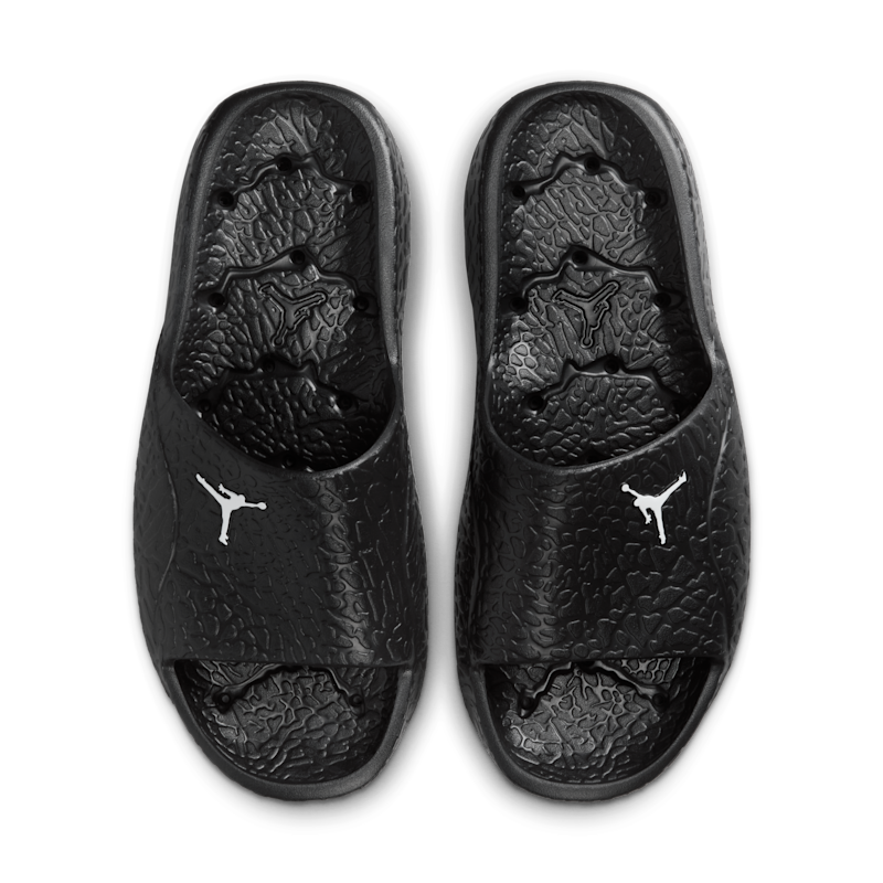 Sujeción a cada paso, incluso en la ducha. Hechas de una sola pieza de espuma robusta pero flexible, estas chanclas de ducha de secado rápido tienen orificios de drenaje en toda la suela exterior. El estampado tipo piel de elefante en relieve aporta tracción a la plantilla y te ofrece el estilo clásico Jordan.