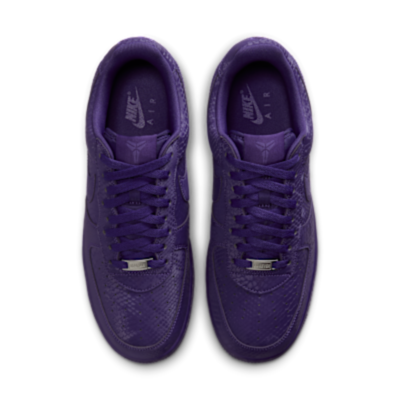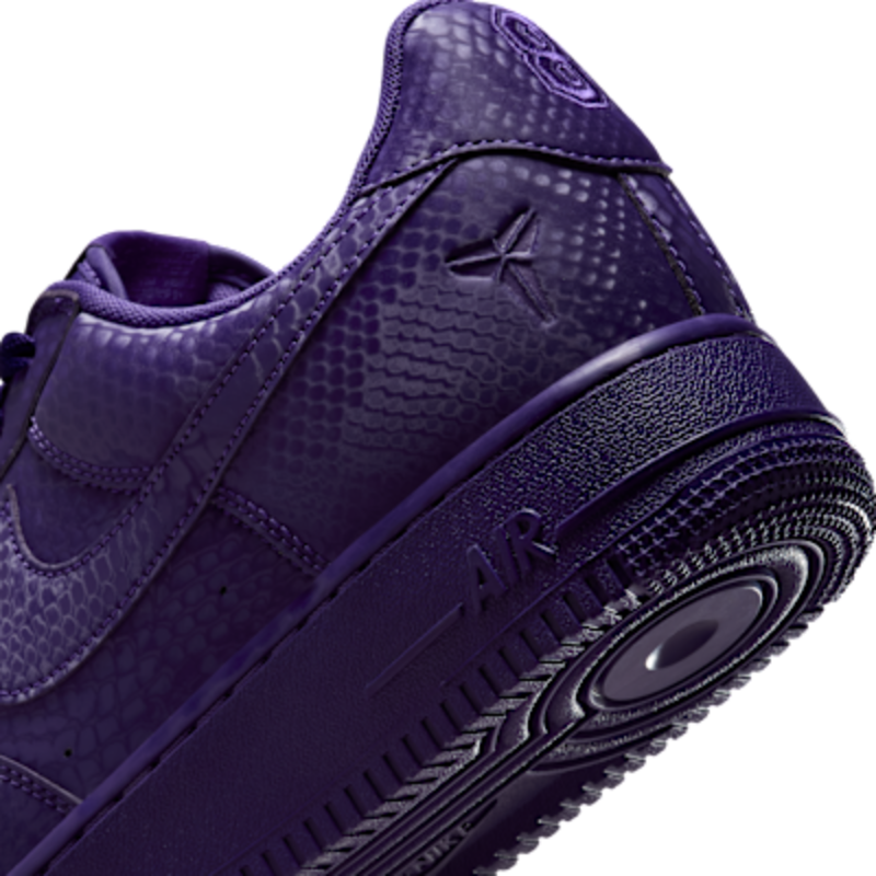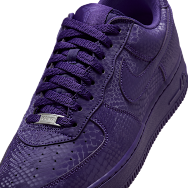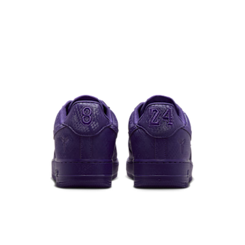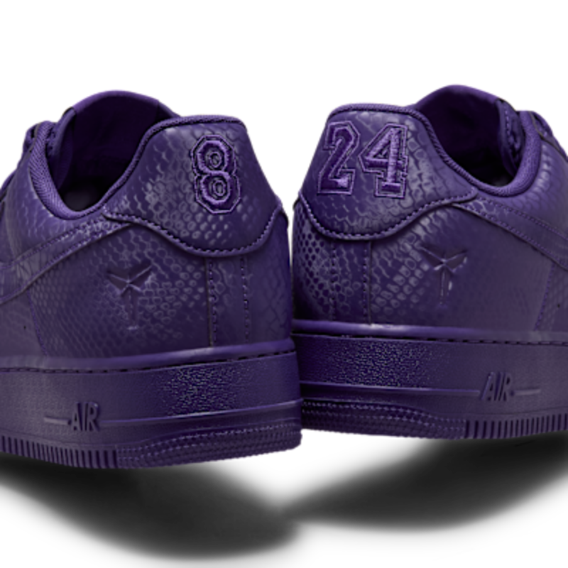 Esta edición especial de los AF1 está impregnada del ADN de Mamba, como el estampado de piel de serpiente por toda la prenda, dando un giro distintivo a un clásico de siempre. Los bordados «8» y «24» en el talón rinden homenaje a los números retirados del jersey de Kobe, mientras que los logotipos Sheath en la lengüeta y la parte exterior del talón añaden un toque de marca exclusivo. Completados con dubraes de cordones especiales «Mamba Forever», estos Kobe AF1 continúan el legado.
